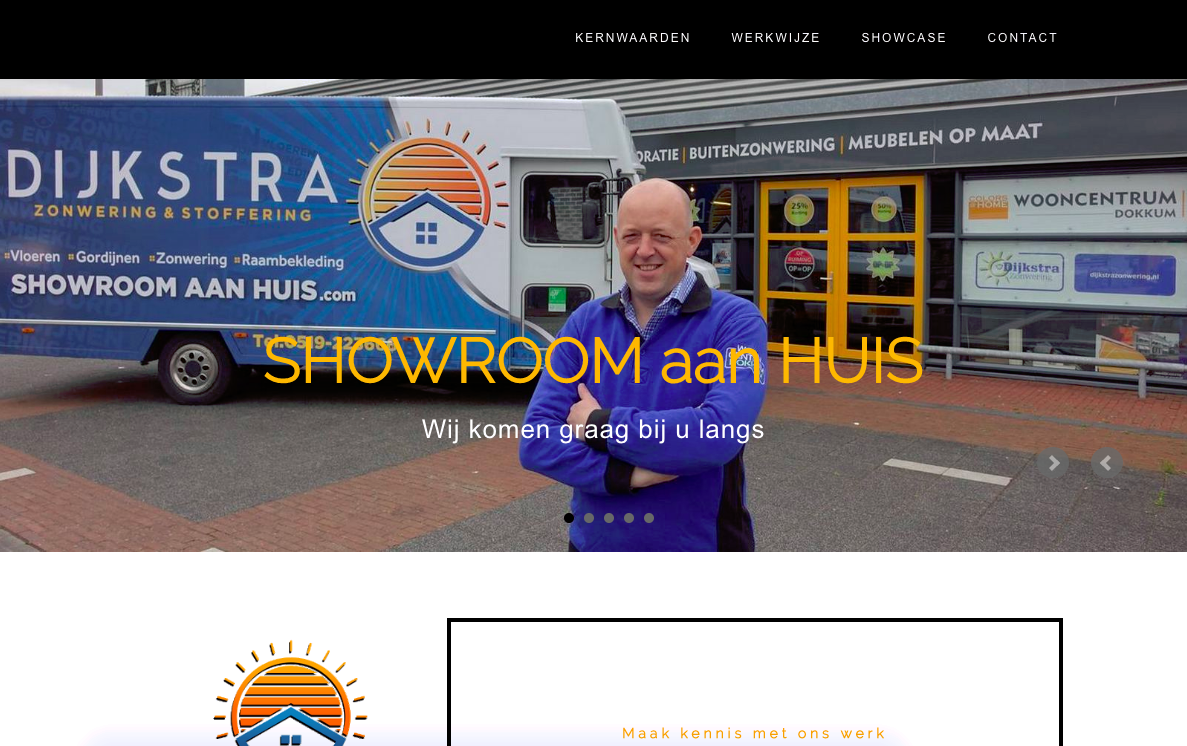 In Noord-Nederland is Dijkstra Zonwering een grote speler op het gebied van zonwering, vloeren, raambekleding en gordijnen. Om het hun klanten makkelijker te maken dan ooit hebben ze een showroom wagen ingericht waarmee ze bij de klant thuis heel veel produkten kunnen laten zien. En meteen opmetingen en pasklaren adviezen kunnen geven. Een vondst!