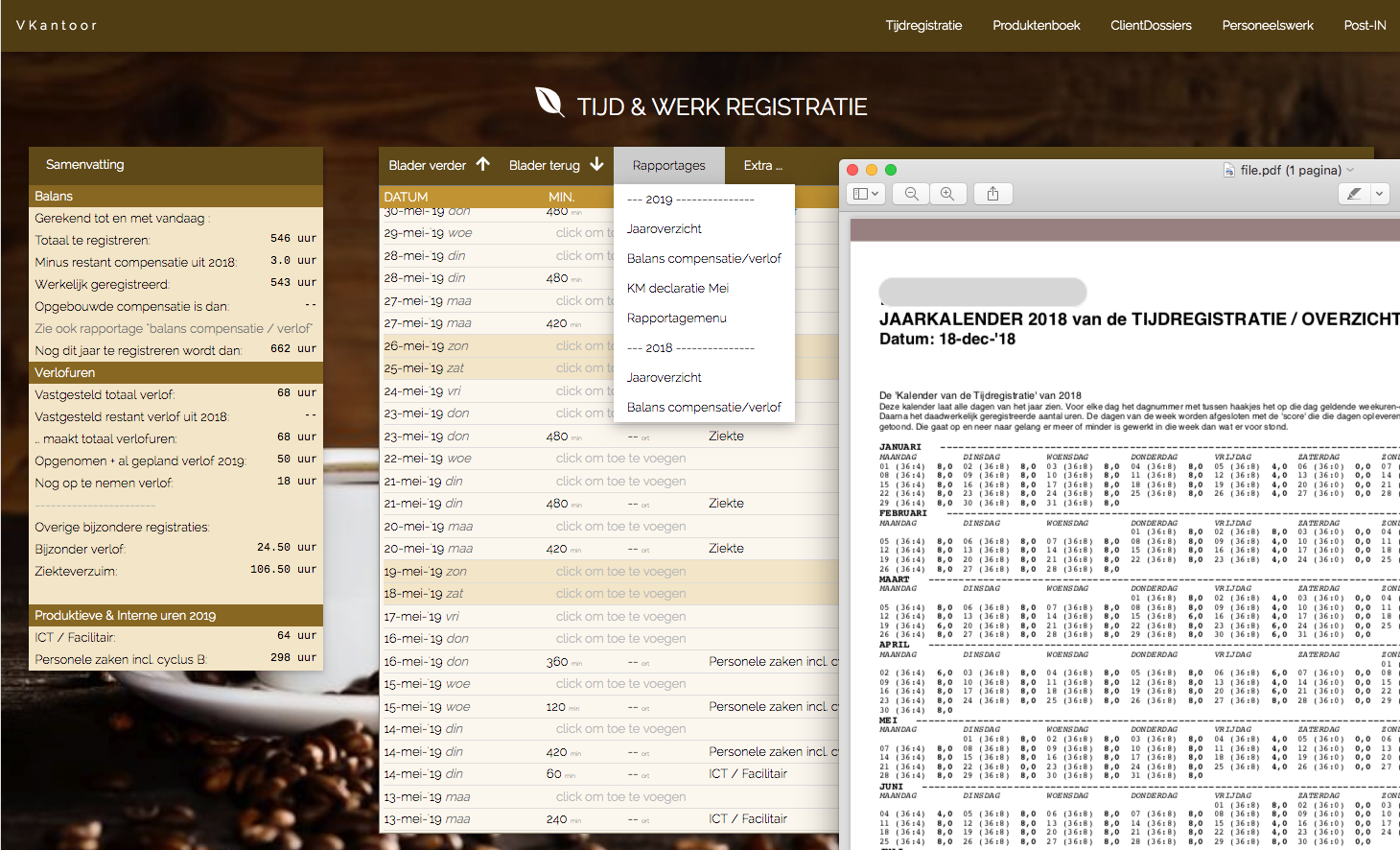 Het Virtueel Kantoor is een web-applicatie in gebruik bij welzijnsinstellingen in Noord Nederland. Zij kunnen alle werk in bijhouden dat zij doen binnen hun projecten. Zowel op het nivo van de medewerker als op dat van de organisatie zelf. Zo vindt je er modules in voor personeelswerk, projectmanagement, telefoon- en postafhandeling, clientdossiers, tijdschrijven, adressenbeheer en contract-management.
